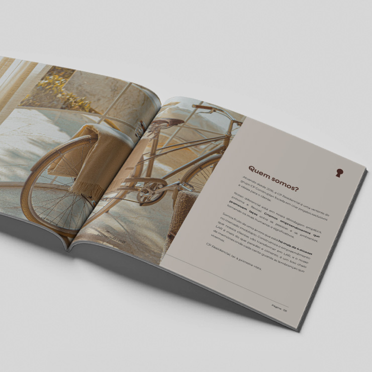 A CP Residencial, braço de incorporação do grupo CP Construplan, atua desde 2016 criando empreendimentos que unem arquitetura de qualidade, conforto e humanização dos espaços. Após quase uma década de atuação e um histórico de projetos emblemáticos, a marca precisava de um portfólio institucional impresso e digital que apresentasse seus diferenciais, história, números e empreendimentos de forma sofisticada, clara e envolvente.